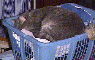 Like most cats, Nash likes nothing better than to curl up in a nice pile of warm, clean laundry.